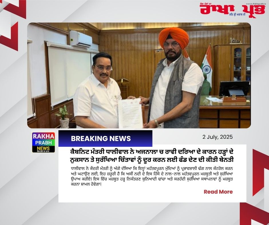 ਚੰਡੀਗੜ੍ਹ 2 ਜੁਲਾਈ : ਐਨ.ਆਰ.ਆਈ. ਮਾਮਲਿਆਂ ਦੇ ਮੰਤਰੀ ਸ. ਕੁਲਦੀਪ ਸਿੰਘ ਧਾਲੀਵਾਲ ਨੇ ਅੱਜ ਕੇਂਦਰੀ ਜਲ ਸ਼ਕਤੀ ਮੰਤਰੀ ਸੀ.ਆਰ. ਪਾਟਿਲ ਨਾਲ ਰਾਵੀ ਦਰਿਆ, ਜੋ ਕਿ ਪੰਜਾਬ ਦੇ ਅੰਮ੍ਰਿਤਸਰ ਦੇ ਅਜਨਾਲਾ ਜ਼ਿਲ੍ਹੇ ਵਿੱਚੋਂ ਵਗਦਾ ਹੈ ਅਤੇ ਪਾਕਿਸਤਾਨ ਨਾਲ ਅੰਤਰਰਾਸ਼ਟਰੀ ਸਰਹੱਦ ਬਣਾਉਂਦਾ ਹੈ, ਸੰਬੰਧੀ ਮਹੱਤਵਪੂਰਨ ਚਿੰਤਾ ਦੇ ਮਾਮਲੇ ‘ਤੇ ਮੁਲਾਕਾਤ ਕੀਤੀ। ਉਨ੍ਹਾਂ ਨੇ ਪੰਜਾਬ ਸਰਕਾਰ ਨੂੰ ਲੋੜੀਂਦੇ ਫੰਡ ਦੇਣ ਦੀ ਬੇਨਤੀ ਕੀਤੀ। ਇਹ ਫੰਡ ਸਾਡੀ ਜ਼ਮੀਨ ਦੀ ਸੁਰੱਖਿਆ, ਸਾਡੇ ਸੁਰੱਖਿਆ ਬੁਨਿਆਦੀ ਢਾਂਚੇ ਦੀ ਰੱਖਿਆ ਅਤੇ ਇਸ ਸੰਵੇਦਨਸ਼ੀਲ ਸਰਹੱਦ ‘ਤੇ ਗੈਰ-ਕਾਨੂੰਨੀ ਗਤੀਵਿਧੀਆਂ ਦੇ ਵਧੇ ਹੋਏ ਜੋਖਮ ਨੂੰ ਰੋਕਣ ਲਈ ਲੋੜੀਂਦੇ ਪ੍ਰੋਜੈਕਟਾਂ ਨੂੰ ਲਾਗੂ ਕਰਨ ਲਈ ਮਹੱਤਵਪੂਰਨ ਹਨ।