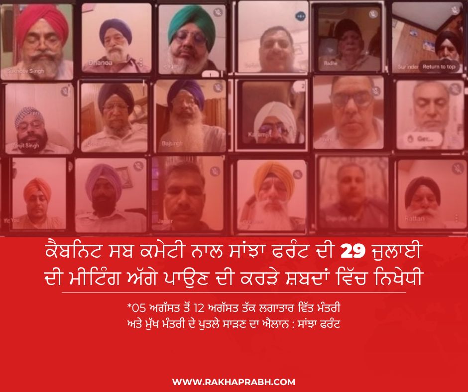 ਪੰਜਾਬ ਸਰਕਾਰ ਦੁਆਰਾ ਪਹਿਲਾਂ ਵਾਂਗ ਹੀ ਮੁਲਾਜਮ ਤੇ ਪੈਨਸ਼ਨਰਜ਼ ਸਾਂਝਾ ਫਰੰਟ ਨਾਲ 29 ਜੁਲਾਈ ਨੂੰ ਹੋਣ ਵਾਲੀ ਮੀਟਿੰਗ ਅੱਗੇ ਪਾਉਣ ਕਰਕੇ ਸਾਂਝਾ ਫਰੰਟ ਦੇ ਆਗੂਆਂ ਨੇ ਕਰੜੇ ਸ਼ਬਦਾਂ ਵਿੱਚ ਨਿਖੇਧੀ ਕੀਤੀ। ਮੁਲਾਜਮ ਤੇ ਪੈਨਸ਼ਨਰਜ਼ ਸਾਂਝਾ ਫਰੰਟ ਦੀ ਆਨਲਾਈਨ ਮੀਟਿੰਗ ਸੁਰਿੰਦਰ ਰਾਮ ਕੁੱਸਾ ਦੀ ਪ੍ਰਧਾਨਗੀ ਹੇਠ ਹੋਈ ਮੀਟਿੰਗ ਵਿੱਚ ਸਮੂਹ ਕਨਵੀਨਰਾਂ, ਕੋ ਕਨਵੀਨਰਾਂ ਅਤੇ ਮੈਂਬਰਾਂ ਨੇ ਪੰਜਾਬ ਸਰਕਾਰ ਦੁਆਰਾ ਮੁਲਾਜਮਾਂ ਪੈਨਸ਼ਨਰਾਂ ਦੀਆਂ ਲੰਮੇ ਸਮੇਂ ਤੋਂ ਲਟਕ ਰਹੀਆਂ ਮੰਗਾਂ ਬਾਰੇ ਵਾਰ ਵਾਰ ਮੀਟਿੰਗਾਂ ਤੋਂ ਭੱਜਣ ਅਤੇ ਸਾਜਸ਼ੀ ਚੁੱਪ ਨੂੰ ਮੁਲਾਜਮਾਂ ਪੈਨਸ਼ਨਰਾਂ ਨਾਲ ਧੋਖਾ ਕਰਾਰ ਦਿੱਤਾ । ਸਾਂਝਾ ਫਰੰਟ ਦੇ ਆਗੂਆਂ ਸ਼ਤੀਸ਼ ਰਾਣਾ,ਰਣਜੀਤ ਸਿੰਘ ਰਾਣਵਾਂ, ਸੁਖਦੇਵ ਸਿੰਘ ਸੈਣੀ , ਗਗਨ ਦੀਪ ਸਿੰਘ,ਗੁਰਪ੍ਰੀਤ ਸਿੰਘ ਗੰਡੀਵਿੰਡ , ਕਰਮ ਸਿੰਘ ਧਨੋਆ, ਬਾਜ ਸਿੰਘ ਖਹਿਰਾ,ਧਨਵੰਤ ਸਿੰਘ ਭੱਠਲ , ਜਰਮਨਜੀਤ ਸਿੰਘ, ਰਤਨ ਸਿੰਘ ਮਜਾਰੀ, ਬੀ.ਐਸ.ਸੈਣੀ,ਪ੍ਰੇਮ ਚਾਵਲਾ, ਰਾਧੇ ਸ਼ਾਮ, ਜਸਬੀਰ ਸਿੰਘ ਤਲਵਾੜਾ,ਬੋਬਿੰਦਰ ਸਿੰਘ, ਦਿਗਵਿਜੈ ਪਾਲ ਸ਼ਰਮਾ,ਸੁਰਿੰਦਰ ਕੁਮਾਰ ਪੁਆਰੀ, ਕਰਮਜੀਤ ਸਿੰਘ ਬੀਹਲਾ ਸਮੇਤ ਮੀਟਿੰਗ ਵਿੱਚ ਸ਼ਾਮਲ ਆਗੂਆਂ ਨੇ ਦੱਸਿਆ ਕਿ 29 ਜੁਲਾਈ ਦੀ ਮੀਟਿੰਗ ਤੋਂ ਸਮੁੱਚੇ ਪੰਜਾਬ ਦੇ ਸੱਤ ਲੱਖ ਮੁਲਾਜਮਾਂ ਤੇ ਪੈਨਸ਼ਨਰਾਂ ਨੂੰ ਭਾਰੀ ਆਸਾਂ ਸਨ ਕਿ 25 ਅਪ੍ਰੈਲ ਨੂੰ ਹੋਈ ਮੀਟਿੰਗ ਦੇ ਫੈਸਲਿਆਂ ਮੁਤਾਬਕ ਜਿੰਨ੍ਹਾਂ ਤੇ 30 ਅਪ੍ਰੈਲ ਨੂੰ ਕੈਬਨਿਟ ਸਬ ਕਮੇਟੀ ਨੇ ਮੋਹਰ ਲਾਉਣੀ ਸੀ, ਛੇਵੇਂ ਪੇ ਕਮਿਸ਼ਨ ਦਾ ਦੂਜਾ ਹਿੱਸਾ ਲਾਗੂ ਕਰਨਾ,ਪੈਨਸ਼ਨਰਾਂ ਲਈ ਸਿਫਾਰਸ਼ ਕੀਤਾ ਗੁਣਾਂਕ 2.59 ਅਤੇ ਨੋਸ਼ਨਲ ਆਧਾਰ ਤੇ ਪੈਨਸ਼ਨਾਂ ਸੋਧਣਾ ,ਪੈਨਸ਼ਨਰਾਂ ਮੁਲਾਜਮਾਂ ਦੇ ਡੀ. ਏ ਨੂੰ ਕੇਂਦਰ ਸਰਕਾਰ ਦੇ ਬਰਾਬਰ ਕਰਨ,ਮੁਲਾਜਮਾਂ ਪੈਨਸ਼ਨਰਾਂ ਦੇ ਬਕਾਏ ਦੀਆਂ ਲੰਮੀ ਮਿਆਦ ਦੀਆਂ ਕਿਸ਼ਤਾਂ ਦੀ ਥਾਂ ਯੱਕ ਮੁਸ਼ਤ ਅਦਾਇਗੀ, ਪੁਰਾਣੀ ਪੈਨਸ਼ਨ ਬਹਾਲ ਕਰਨੀ , ਠੇਕੇ ਆਊਟ ਸੋਰਸ, ਮਾਣ ਭੱਤਾ/ ਇੰਸੇਂਟਿਵ ਅਤੇ ਕੱਚੇ ਦਿਹਾੜੀਦਾਰ ਮੁਲਾਜਮਾਂ ਨੂੰ ਰੈਗੂਲਰ ਕਰਨ , ਘੱਟੋ ਘੱਟ ਉਜਰਤ 18000 ਕਰਨੀ , 1 – 1 – 2015 ਦਾ ਨੋਟੀਫਿਕੇਸ਼ਨ ਰੱਦ ਕਰਕੇ ਪ੍ਰੋਬੇਸ਼ਨ ਪੀਰੀਅਡ ਤਿੰਨ ਸਾਲ ਦੀ ਥਾਂ ਪੂਰੀ ਤਨਖਾਹ ਤੇ ਇੱਕ ਸਾਲ ਕਰਨ , ਪੰਜਾਬ ਦੇ ਮੁਲਾਜਮਾਂ ਤੇ ਕੇਂਦਰੀ ਤਨਖਾਹ ਸਕੇਲ ਲਾਗੂ ਕਰਨ ਵਾਲਾ 17 ਜੁਲਾਈ 2020 ਦਾ ਪੱਤਰ ਰੱਦ ਕਰਨ ਵਰਗੀਆਂ ਅਹਿਮ ਮੰਗਾਂ ਦੀ ਪੂਰਤੀ ਕਰਨ ਵੱਲ ਝਾਕ ਲਾਈ ਬੈਠੇ ਮੁਲਾਜਮਾਂ ਪੈਨਸ਼ਨਰਾਂ ਵਿੱਚ ਸਰਕਾਰ ਵਲੋਂ 20 ਅਗਸਤ ਦੀ ਮੀਟਿੰਗ ਅੱਗੇ ਪਾਉਣ ਕਰਕੇ ਗੁੱਸਾ ਅਤੇ ਰੋਹ ਪਣਪਣਾ ਕੁਦਰਤੀ ਹੈ। ਮੁਲਾਜਮ ਤੇ ਪੈਨਸ਼ਨਰਜ਼ ਸਾਂਝੇ ਫਰੰਟ ਨੇ ਇਸ ਆਨਲਾਈਨ ਮੀਟਿੰਗ ਵਿੱਚ ਪੰਜਾਬ ਸਰਕਾਰ ਖ਼ਿਲਾਫ਼ ਸੰਘਰਸ਼ ਦਾ ਐਲਾਨ ਕਰਦਿਆਂ ਸਾਰੇ ਪੰਜਾਬ ਦੇ ਜਿਲ੍ਹਾ ਹੈੱਡ ਕੁਆਰਟਰਾਂ ਤੇ ਪਹਿਲੀ ਅਗੱਸਤ ਨੂੰ ਸਾਂਝਾ ਫਰੰਟ ਵਿੱਚ ਸ਼ਾਮਲ ਸਾਰੀਆਂ ਜਥੇਬੰਦੀਆਂ ਦੀ ਜਿਲਾ ਪੱਧਰੀ ਮੀਟਿੰਗ 2.30 ਵਜੇ ਕਰਨ ਦਾ ਫੈਸਲਾ ਕੀਤਾ ਹੈ, ਜਿਸ ਵਿੱਚ ਪੰਜਾਬ ਸਰਕਾਰ ਦੇ ਟਰਕਾਊ ਰਵਈਏ ਖ਼ਿਲਾਫ਼ 5 ਅਗੱਸਤ ਤੋਂ 12 ਅਗੱਸਤ ਤੱਕ ਲਗਾਤਾਰ ਮੁੱਖ ਮੰਤਰੀ ਪੰਜਾਬ ਅਤੇ ਵਿੱਤ ਮੰਤਰੀ ਦੇ ਪੁਤਲੇ ਬਲਾਕ,ਤਹਿਸੀਲ ਅਤੇ ਜਿਲ੍ਹਾ ਪੱਧਰਾਂ ਤੇ ਸਾੜ ਕੇ ਆਪਣੇ ਗੁੱਸੇ ਅਤੇ ਰੋਹ ਦਾ ਪ੍ਰਗਟਾਵਾ ਕੀਤਾ ਜਾਵੇਗਾ । ਮੀਟਿੰਗ ਵਿੱਚ ਫੈਸਲਾ ਕੀਤਾ ਗਿਆ ਕਿ ਜੇਕਰ ਪੰਜਾਬ ਸਰਕਾਰ ਨੇ 20 ਅਗਸਤ ਤੱਕ ਉਪਰੋਕਤ ਮੰਗਾਂ ਬਾਰੇ ਕੋਈ ਫੈਸਲਾ ਨਾ ਕੀਤਾ ਤਾਂ ਸਾਂਝਾ ਫਰੰਟ ਦੀ ਸੂਬਾ ਪੱਧਰੀ ਮੀਟਿੰਗ ਲੁਧਿਆਣਾ ਦੇ ਈਸੜੂ ਭਵਨ ਵਿਖੇ 23 ਅਗਸਤ ਨੂੰ 11 