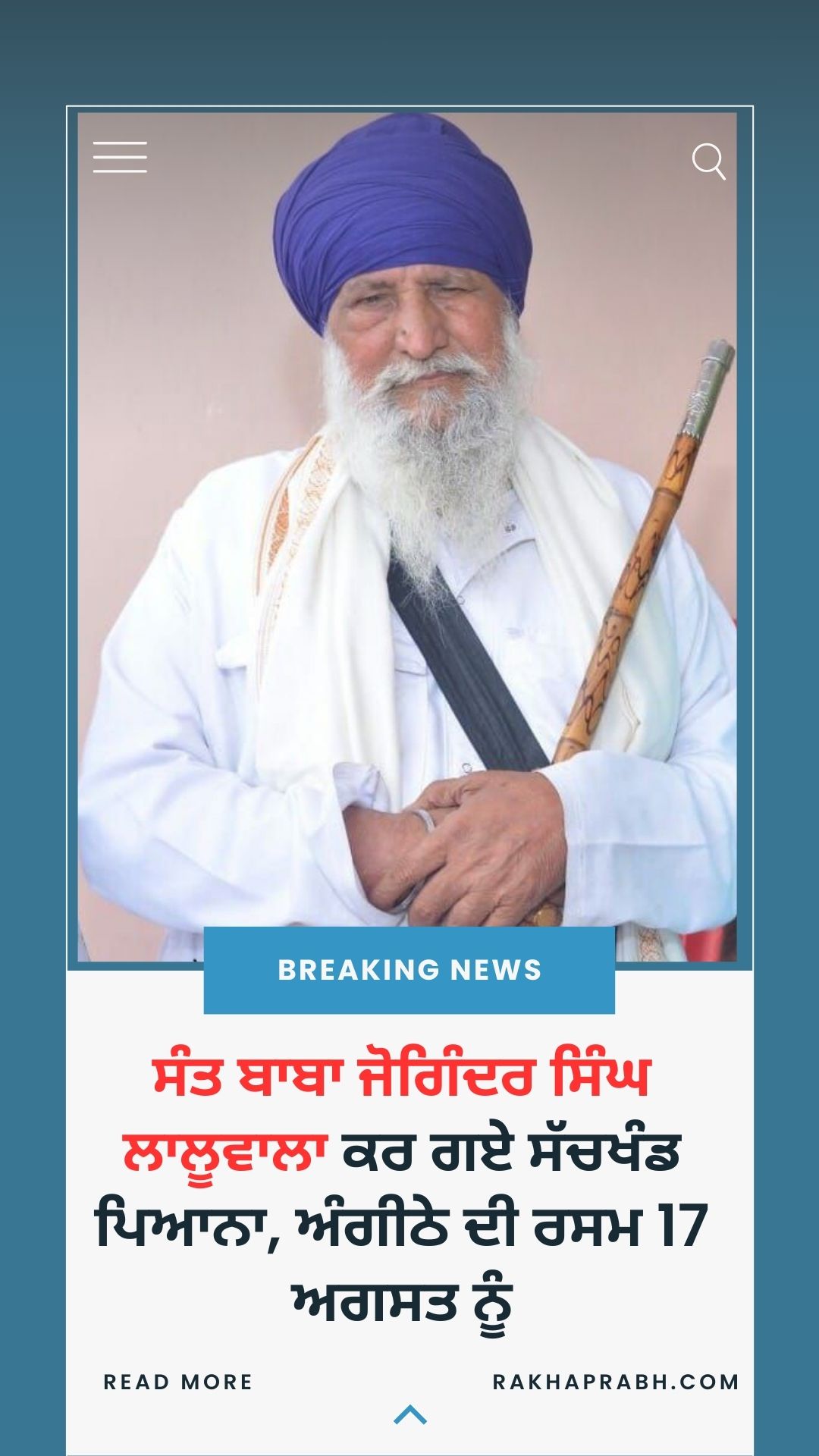 ਗੁਰਦੁਆਰਾ ਦਮਦਮਾ ਸਾਹਿਬ ਪਿੰਡ ਲਾਲੂ ਵਾਲਾ (ਮੱਖੂ ) ਦੇ ਅਸਥਾਨਾਂ ਦੇ ਮੁੱਖ ਸੇਵਾਦਾਰ ਬਾਬਾ ਜੋਗਿੰਦਰ ਸਿੰਘ ਜੀ 14 ਅਗਸਤ 2025 ਨੂੰ ਸੱਚਖੰਡ ਪਿਆਨਾ ਕਰ ਗਏ ਹਨ। ਜਿਸ ਦੇ ਚਲਦਿਆ 15 ਅਗਸਤ ਨੂੰ ਉਨ੍ਹਾਂ ਦੇ ਪੰਜਪੂਤਕ ਸਰੀਰ ਦਾ ਅੰਤਿਮ ਸੰਸਕਾਰ ਕੀਤਾ ਗਿਆ ਅਤੇ ਹੁਣ 17 ਅਗਸਤ ਨੂੰ ਉਨ੍ਹਾਂ ਦੇ ਅੰਗੀਠੇ ਦੀ ਸਾਂਭ ਸੰਭਾਲ ਦੀ ਸੇਵਾ ਕੀਤੀ ਜਾਵੇਗੀ। ਇਸ ਸਬੰਧੀ ਜਾਣਕਾਰੀ ਦਿੰਦਿਆਂ ਗੁਰਦੁਆਰਾ ਦਮਦਮਾ ਸਾਹਿਬ (ਡੇਰਾ ਬਾਬਾ ਮੂਲਾ ਸਿੰਘ ਜੀ ਲਾਲੂ ਵਾਲਾ) ਮੱਖੂ ਦੇ ਮੌਜੂਦਾ ਮੁੱਖ ਸੇਵਾਦਾਰ ਬਾਬਾ ਸ਼ਮਸ਼ੇਰ ਸਿੰਘ ਜੀ ਵੱਲੋਂ ਮੀਡੀਆ ਨੂੰ ਦਿੱਤੀ ਗਈ। ਜ਼ਿਕਰਯੋਗ ਹੈ ਕਿ ਗੁਰਦੁਆਰਾ ਦਮਦਮਾ ਸਾਹਿਬ ਪਿੰਡ ਲਾਲੂਵਾਲ ਅਸਥਾਨਾਂ ਦੀ ਨੀਂਹ ਸੰਤ ਬਾਬਾ ਤਾਰਾ ਸਿੰਘ ਜੀ ਸਰਹਾਲੀ ਸਾਹਿਬ ਵਾਲਿਆਂ ਤੋਂ ਵਰੋਸਾਏ ਮਹਾਂਪੁਰਖ ਸੰਤ ਬਾਬਾ ਮੂਲਾ ਸਿੰਘ ਜੀ ਨੇ ਇਲਾਕੇ ਦੀ ਸੰਗਤ ਦੇ ਸਹਿਯੋਗ ਨਾਲ ਸ਼ੁਰੂ ਕਰਵਾਈ। ਮਹਾਂਪੁਰਖ ਬਾਬਾ ਮੂਲਾ ਸਿੰਘ ਜੀ ਦੇ ਸੱਚਖੰਡ ਪਿਆਨਾ ਕਰਨ ਤੋਂ ਬਾਅਦ ਉਨਾਂ ਦੇ ਭਰਾ ਬਾਬਾ ਜੋਗਿੰਦਰ ਸਿੰਘ ਜੀ ਨੂੰ ਇਲਾਕੇ ਦੀਆਂ ਸੰਗਤਾਂ ਨੇ ਦਸਤਾਰ ਬੰਦੀ ਕਰਕੇ ਇਨਾਂ ਅਸਥਾਨਾਂ ਦੀ ਸੇਵਾ ਸੰਭਾਲ ਲਈ ਮੁੱਖ ਸੇਵਾਦਾਰ ਦੀ ਸੇਵਾ ਦਿੱਤੀ।